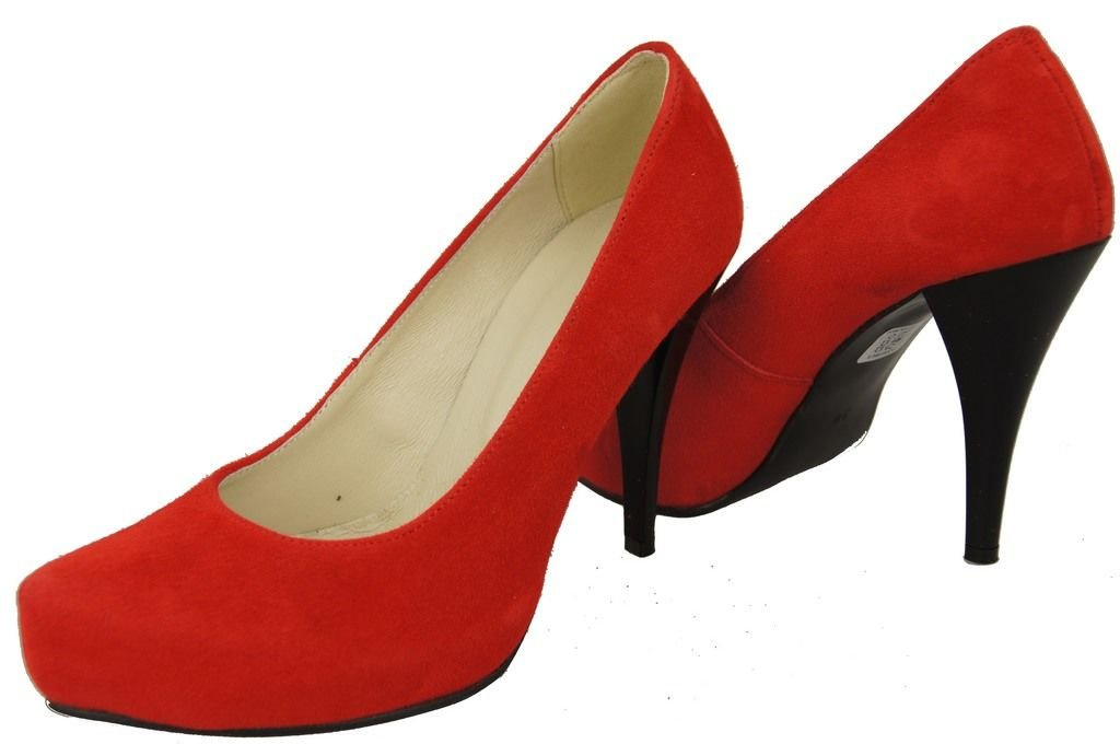 Obuwie Damskie Czółenka Czerwone Skóra naturalna Zamszowa 644 ElitaBut