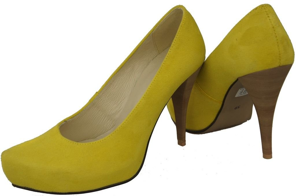Obuwie Damskie Czółenka Cytronowy Skóra naturalna Zamszowa 644 ElitaBut