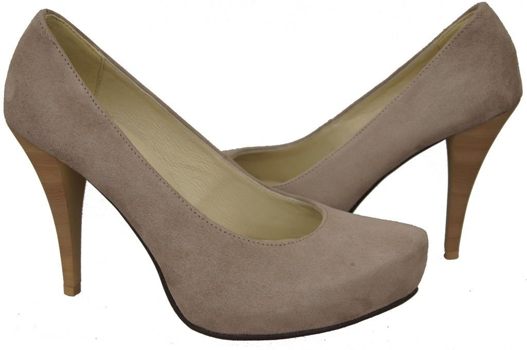 Obuwie Damskie Czółenka Cappuccino Skóra naturalna Zamszowa 644 ElitaBut