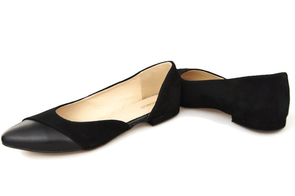 Obuwie Damskie Baleriny Czarne skóra naturalna Zamszowa 146 ElitaBut