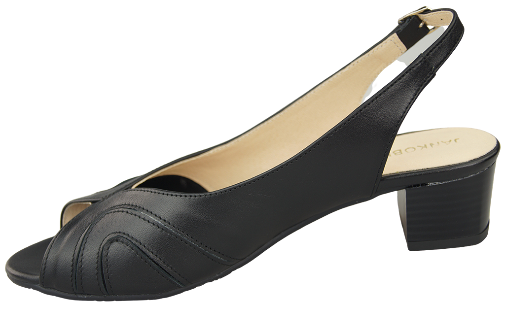 • Eleganckie sandały damskie wykonane z naturalnej skóry licowej o klasycznym kolorze.