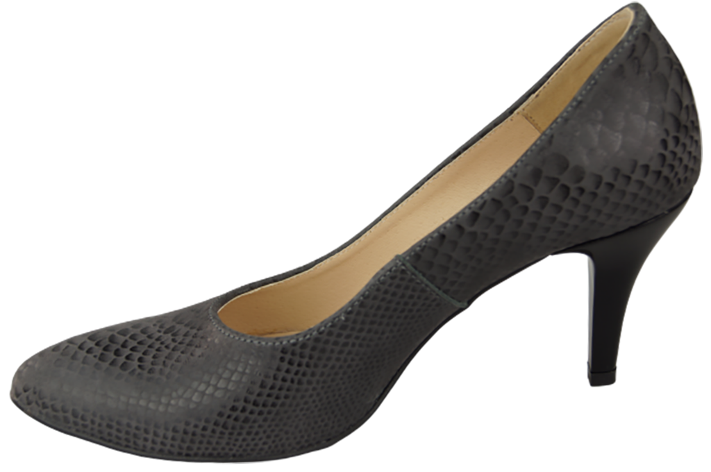 - Czółenka damskie wykonane z wysokiej jakości skóry naturalnej tłoczonej zachwycają modnym wzorem imitującym skórę węża, dzięki któremu klasyczny krój zyskuje nowoczesnego, intrygującego charakteru.