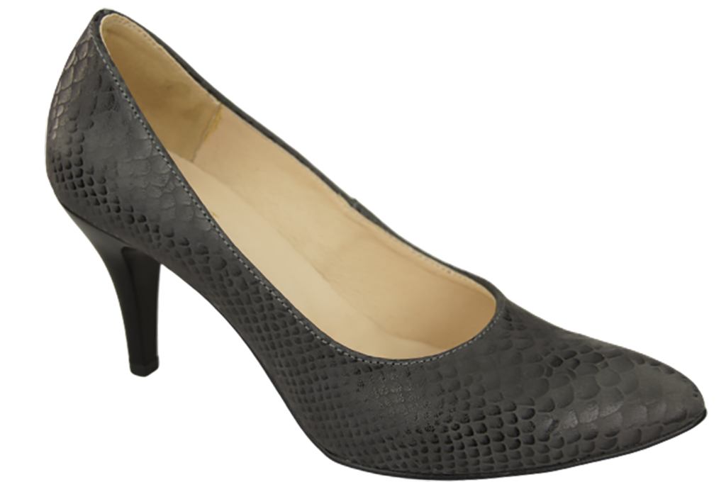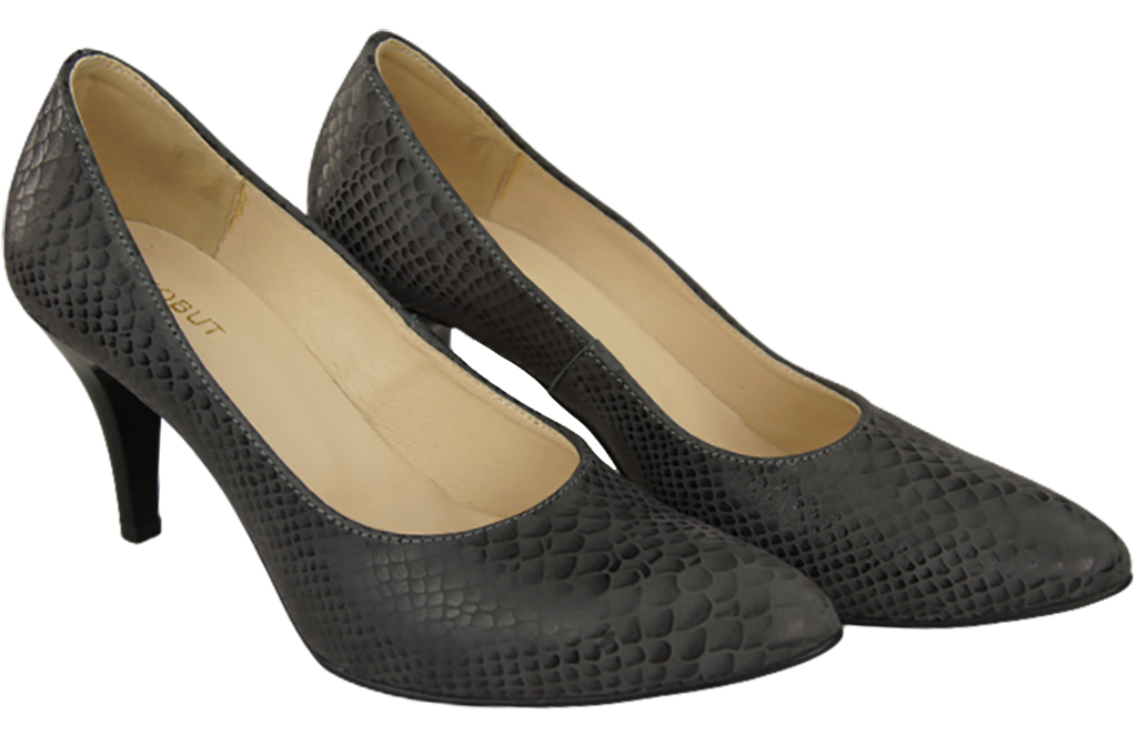 Obuwie Damskie Czółenka Popielate Motyw Węża Skóra naturalna 150 ElitaBut