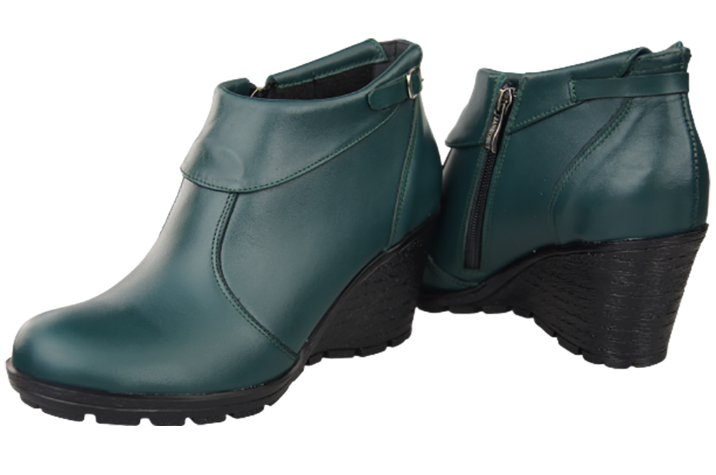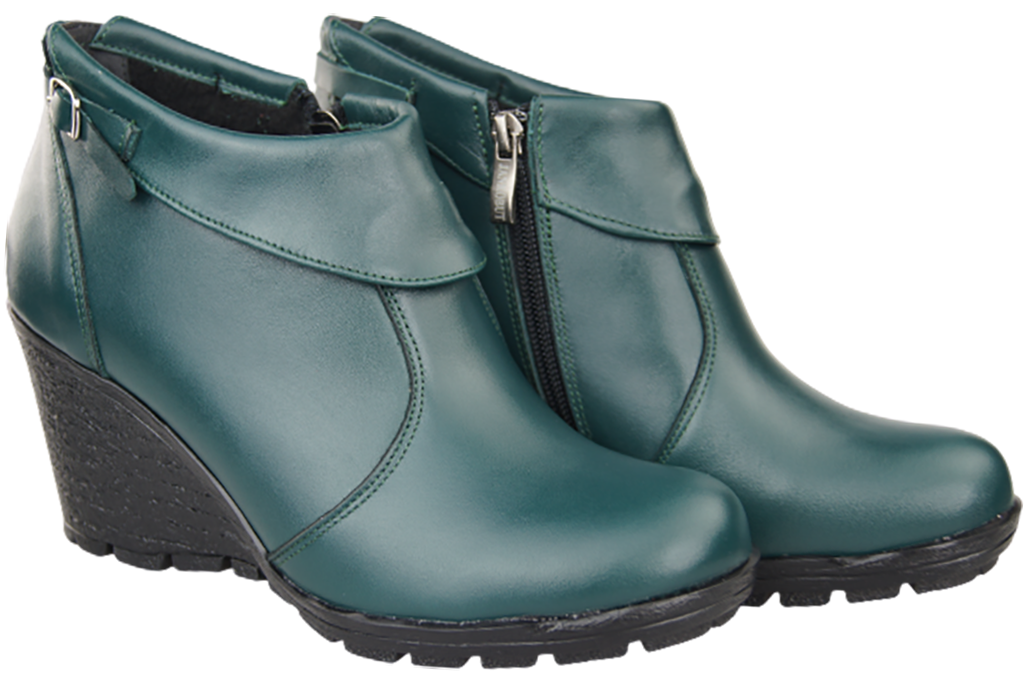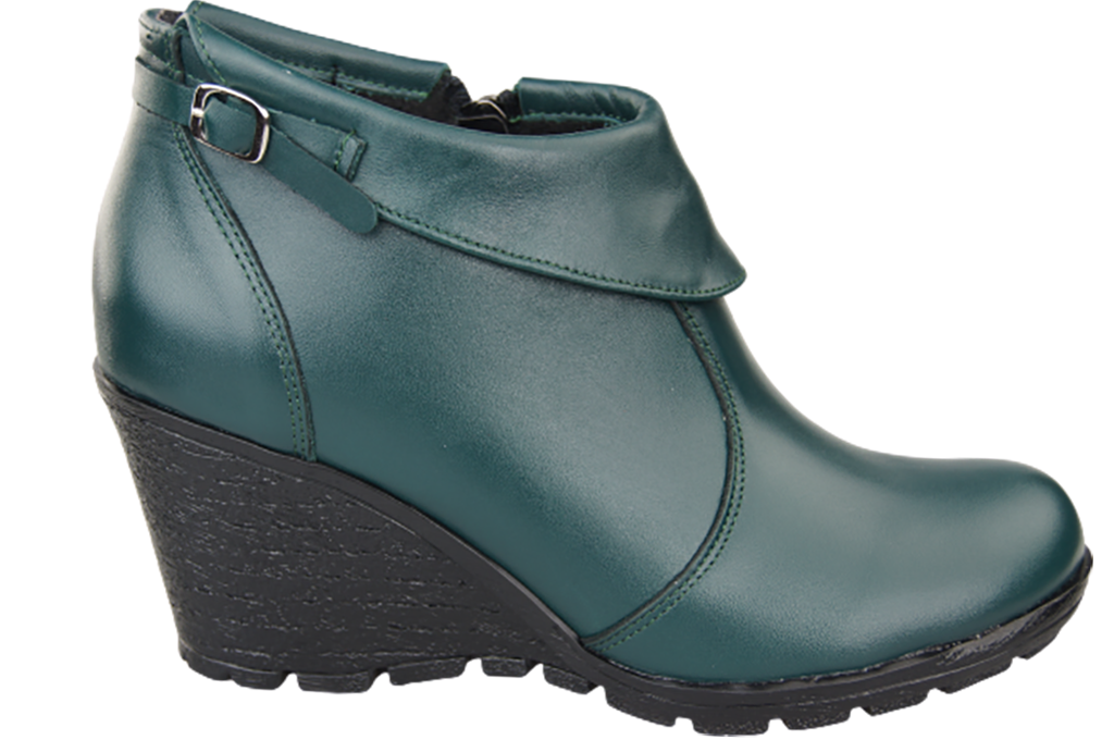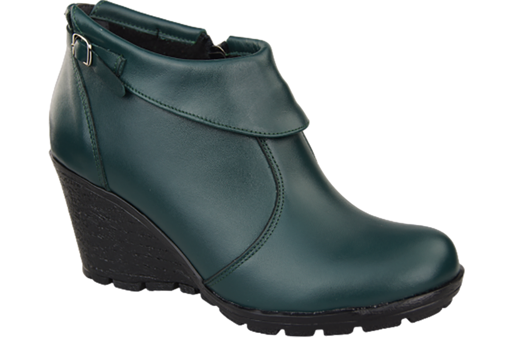 Obuwie Botki Damskie Koturna skóra naturalna Malachitowe 739 ElitaBut