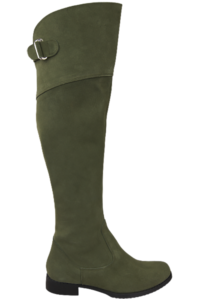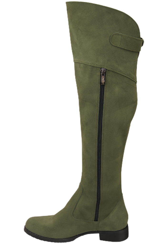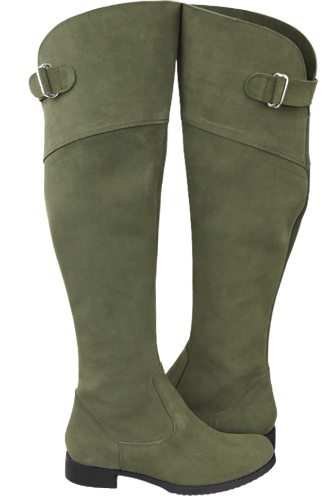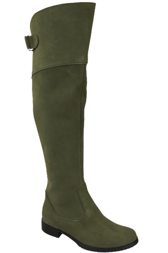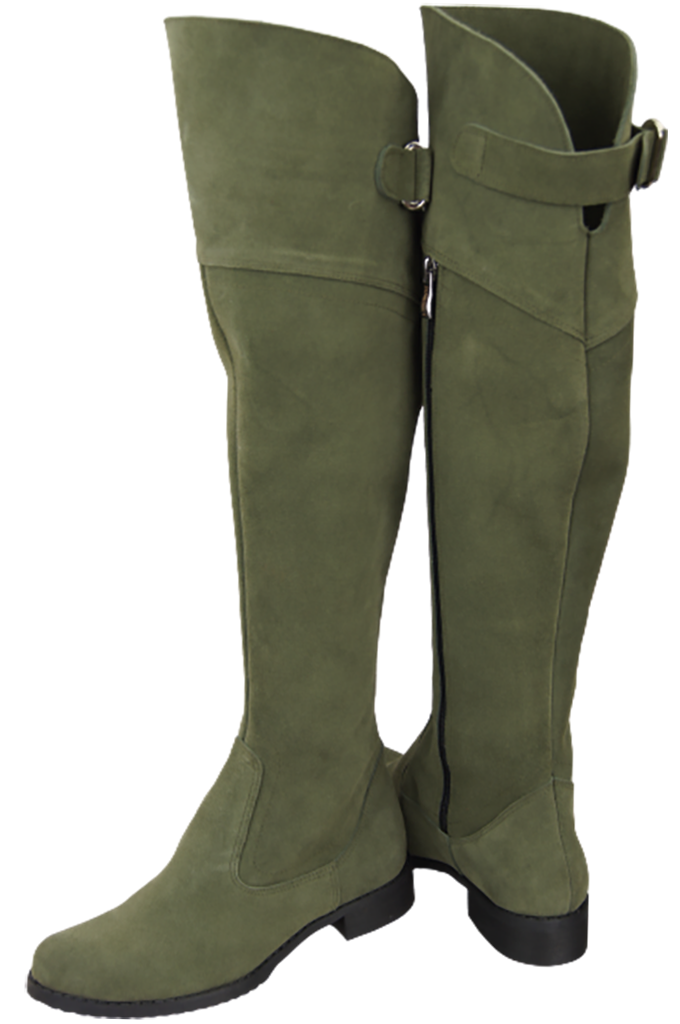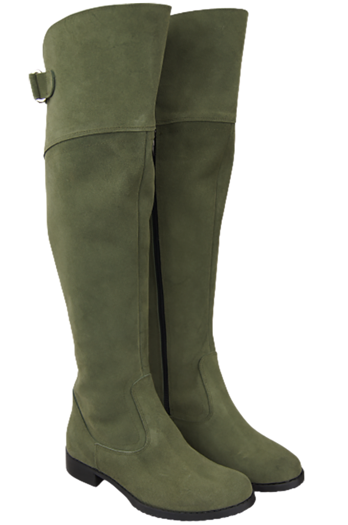 Obuwie Kozaki Damskie Oficerki Butelkowa Zieleń Muszkieterki Wysokie za kolano skóra naturalna Welurowa 154 ElitaBut