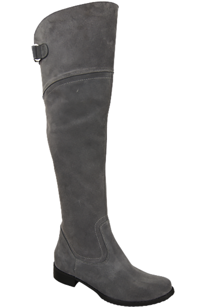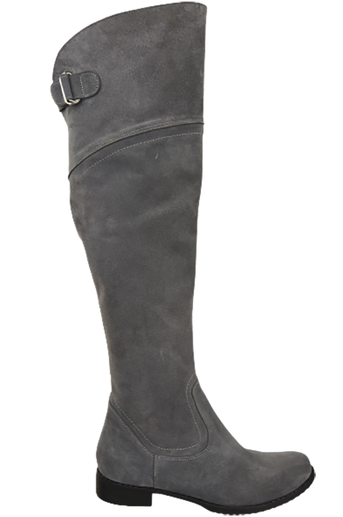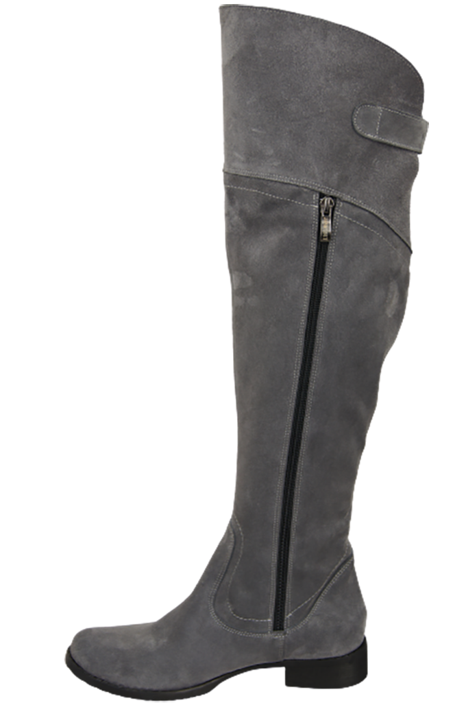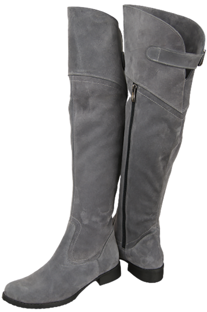 Obuwie Kozaki Damskie Popielate Oficerki Muszkieterki Wysokie za kolano skóra naturalna Welurowa 154 ElitaBut
