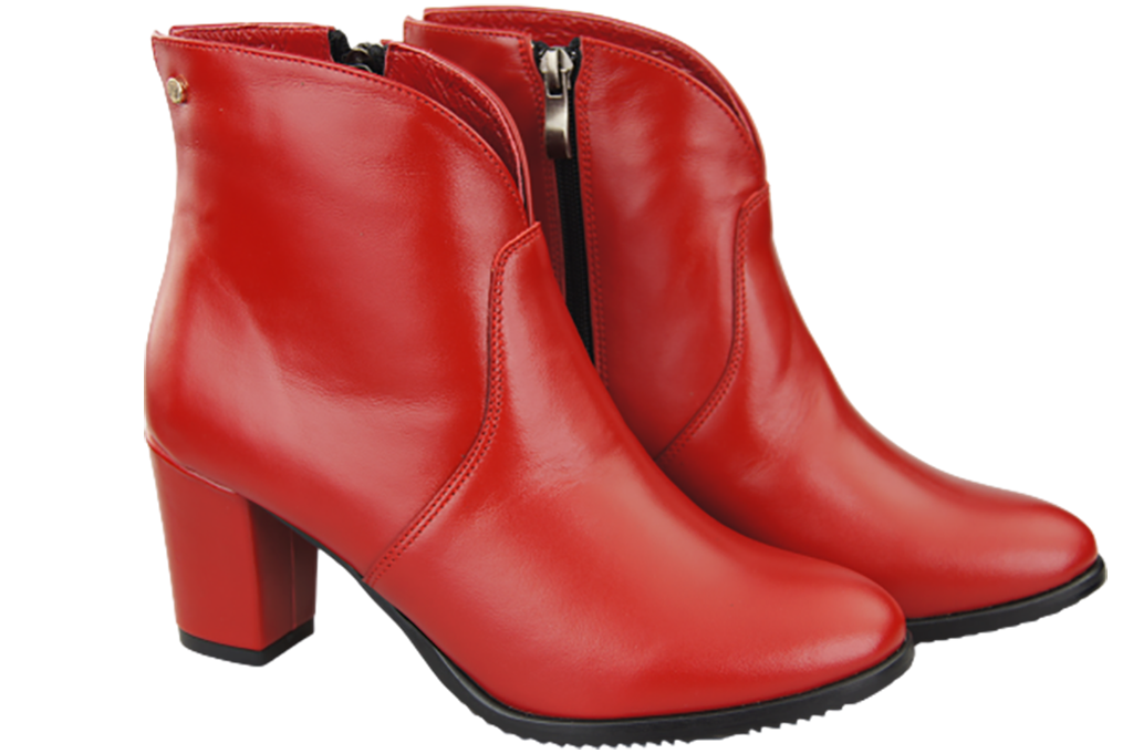 Obuwie Botki Damskie Zima skóra naturalna Czerwone 152 Z ElitaBut