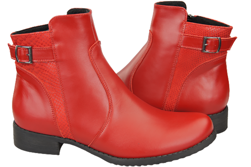 Obuwie Botki Damskie Zima skóra naturalna Czerwone 156 Z ElitaBut