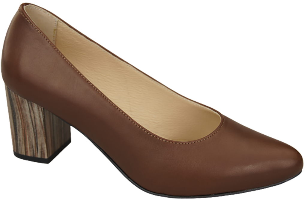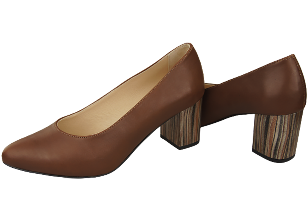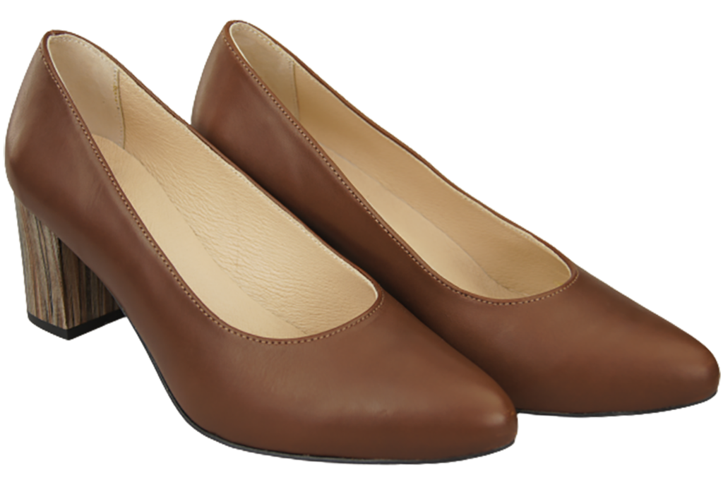 Obuwie Damskie Czółenka Brązowe Skóra naturalna z Ozdobnym Obcasem 157 ElitaBut