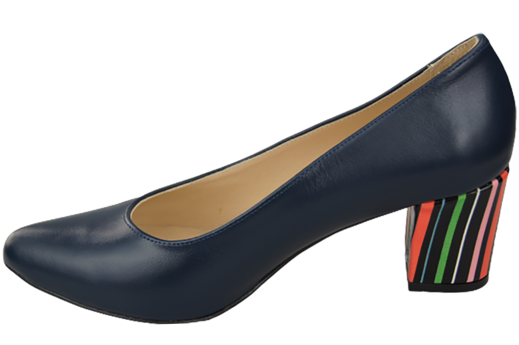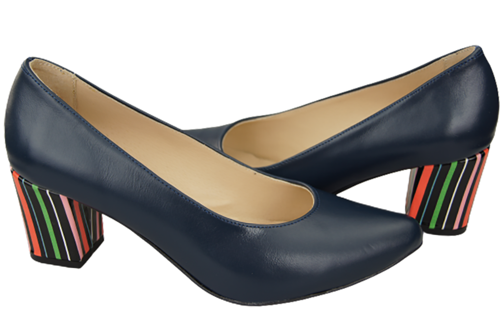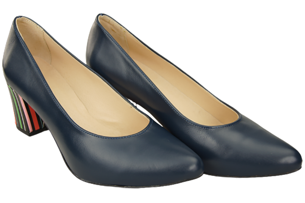 Obuwie Damskie Czółenka Granatowe Skóra naturalna z Ozdobnym Obcasem 158 ElitaBut