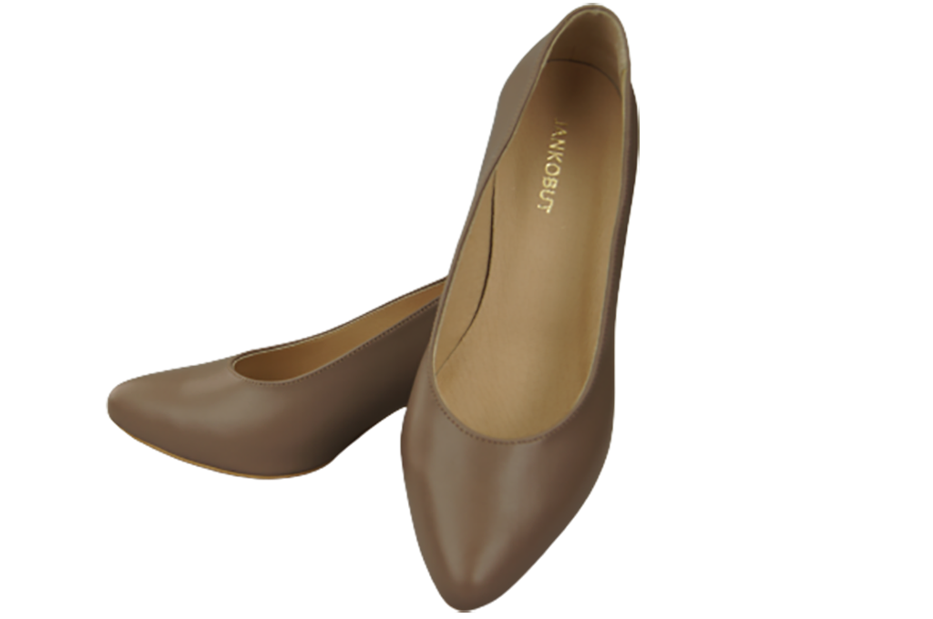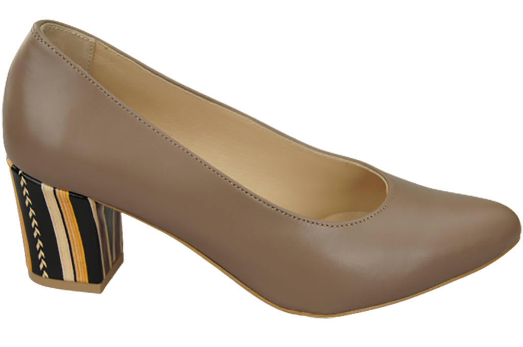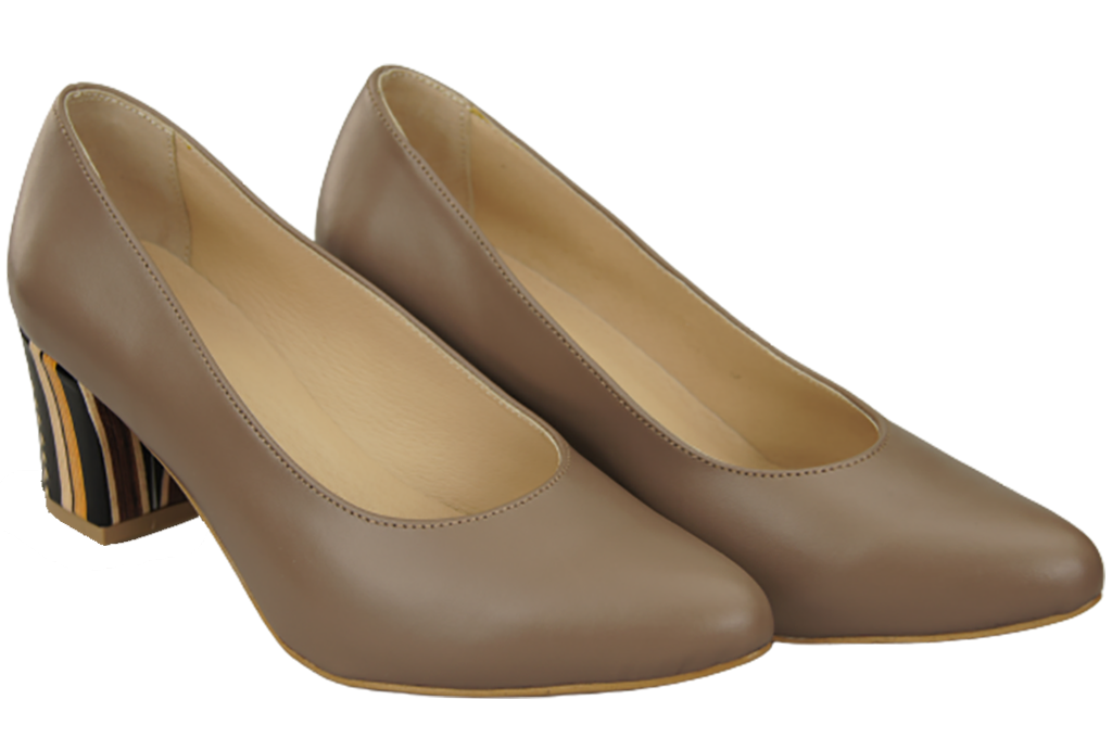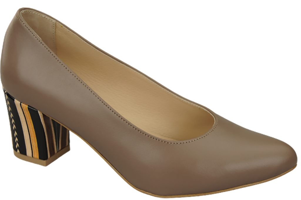 Obuwie Damskie Czółenka Cappuccino Skóra naturalna z Ozdobnym Obcasem 158 ElitaBut