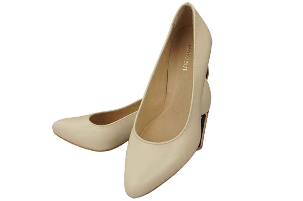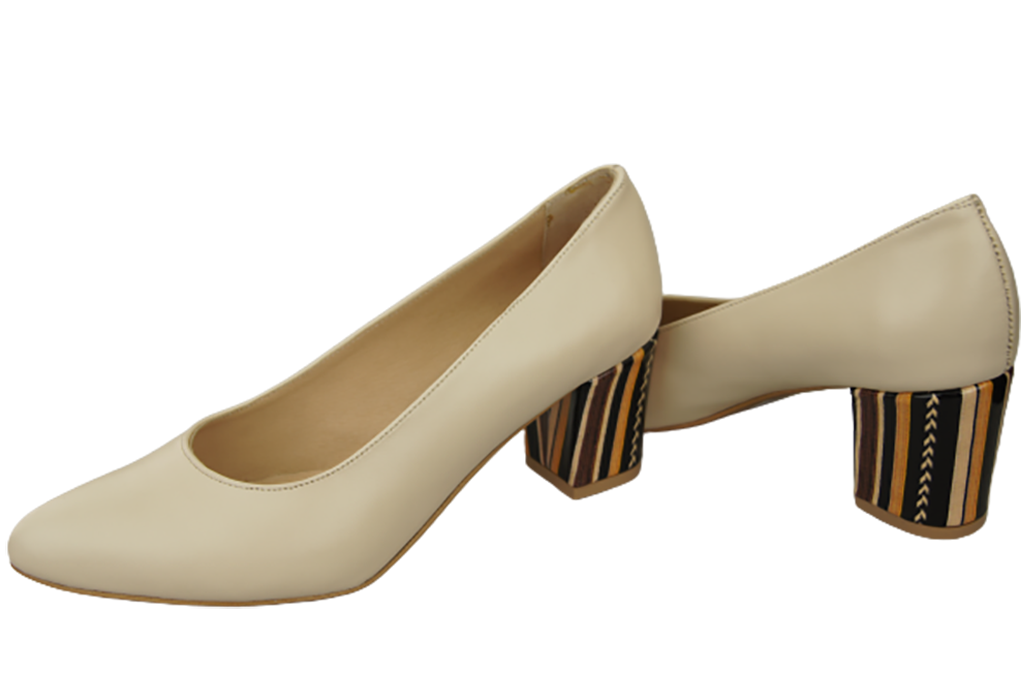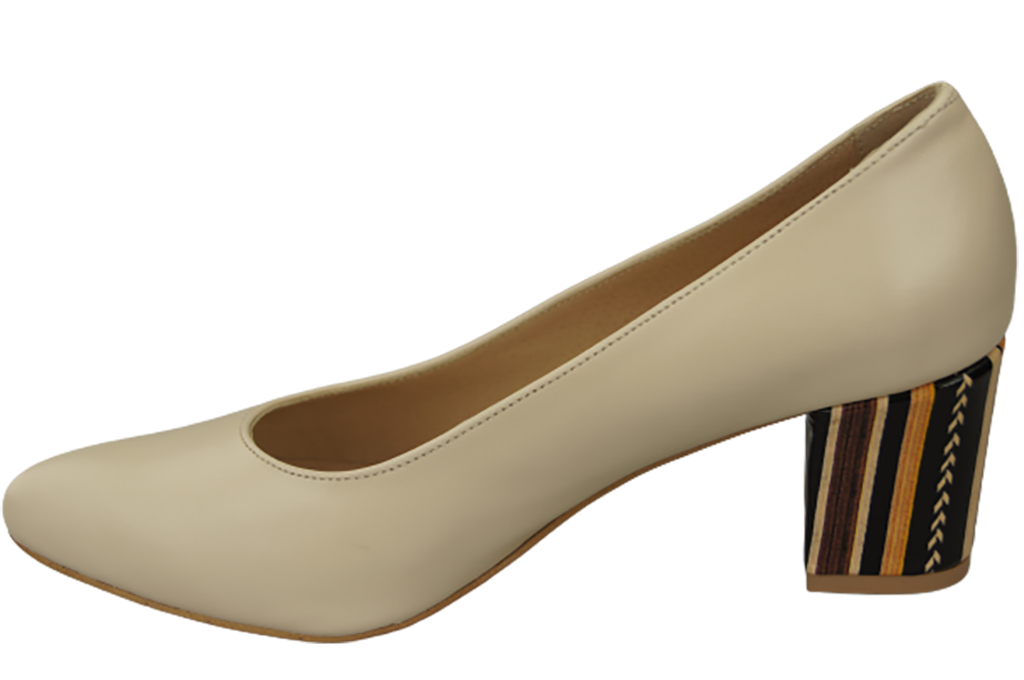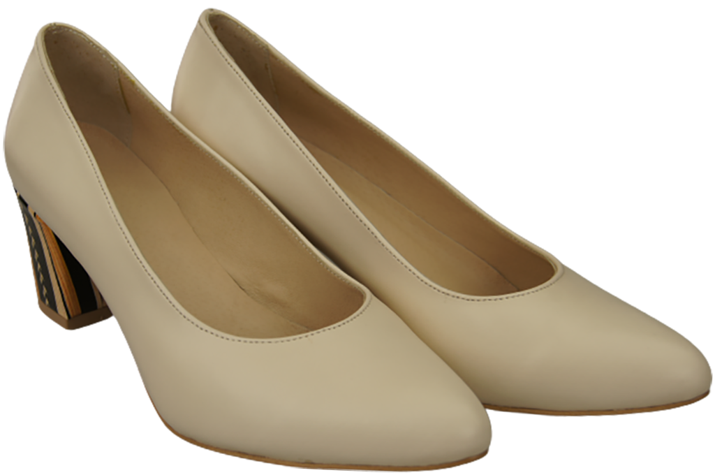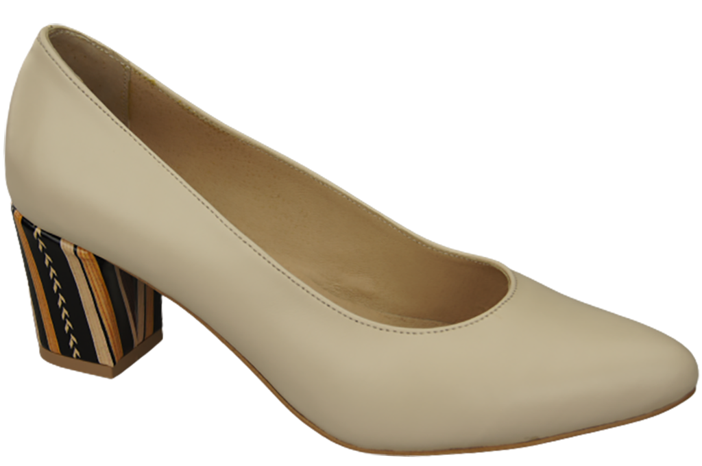 Obuwie Damskie Czółenka Beżowe Skóra naturalna z Ozdobnym Obcasem 158 ElitaBut