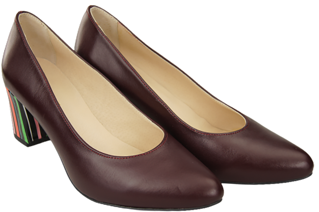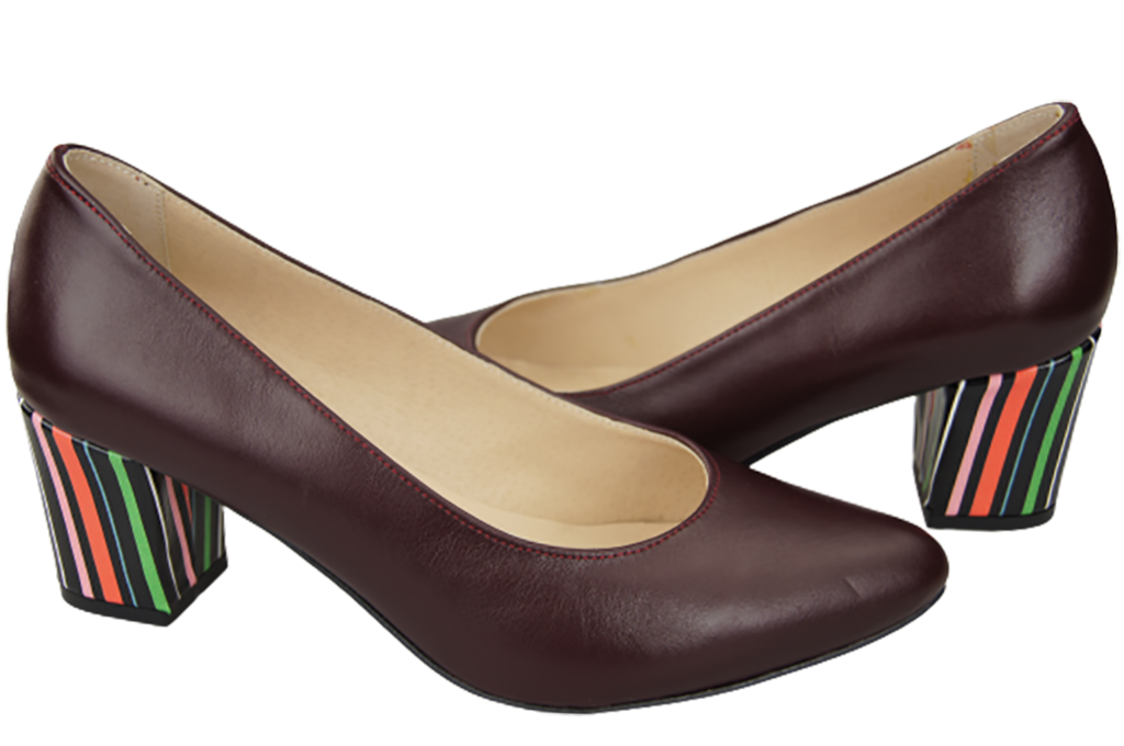 Obuwie Damskie Czółenka Bordowe Skóra naturalna z Ozdobnym Obcasem 158 ElitaBut