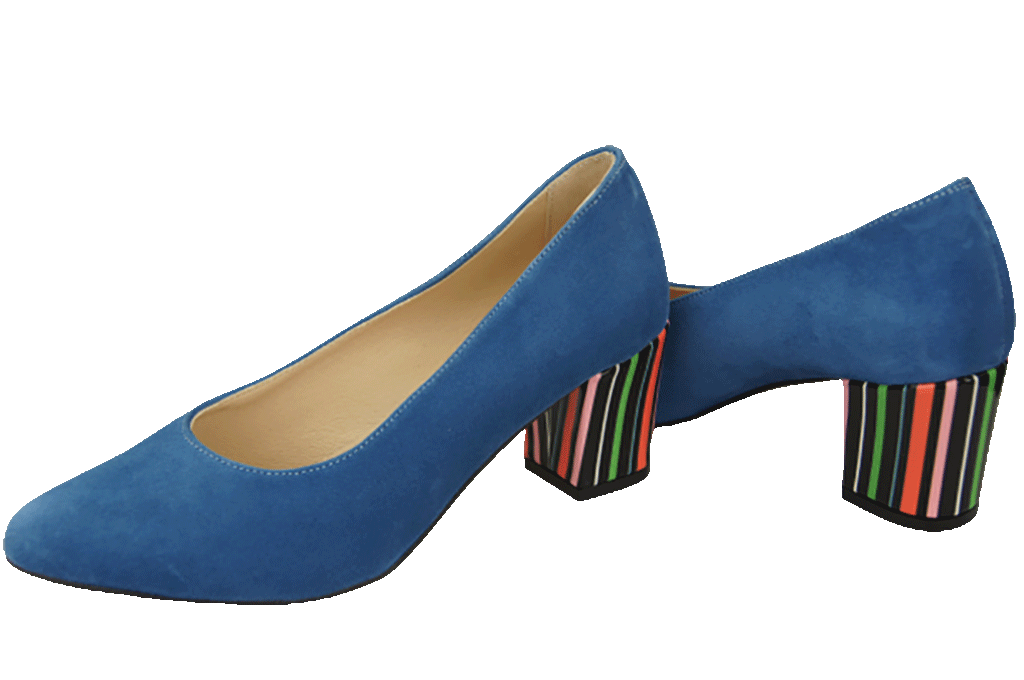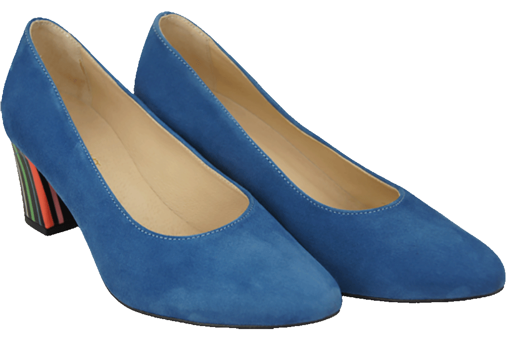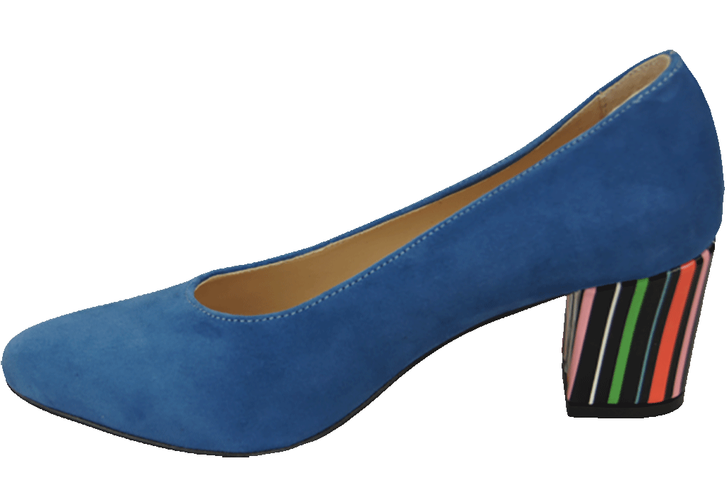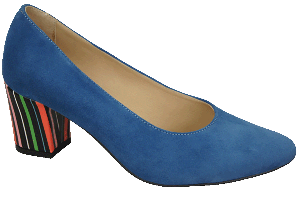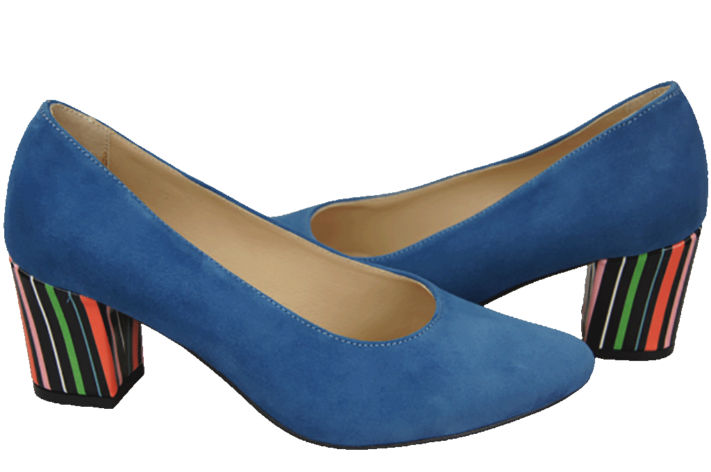 Obuwie Damskie Czółenka Niebieskie Skóra naturalna zamszowa Ozdobny Obcas 158 Z ElitaBut
