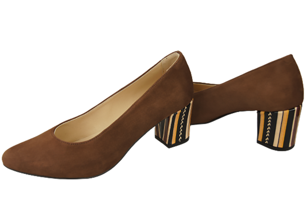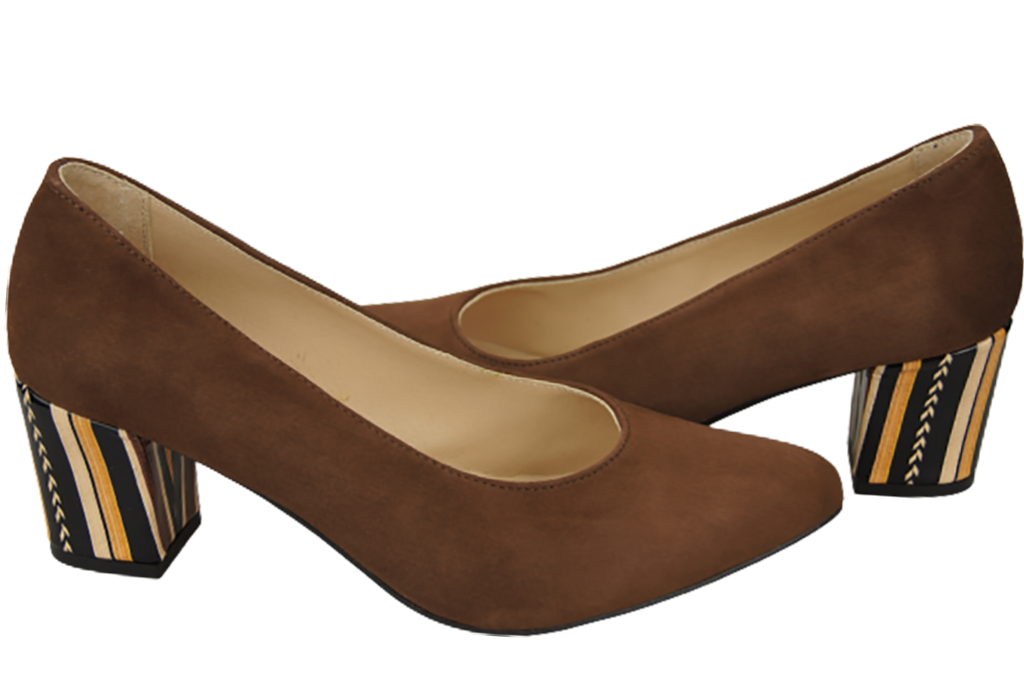 Obuwie Damskie Czółenka Brązowe Skóra naturalna zamszowa Ozdobny Obcas 158 Z ElitaBut