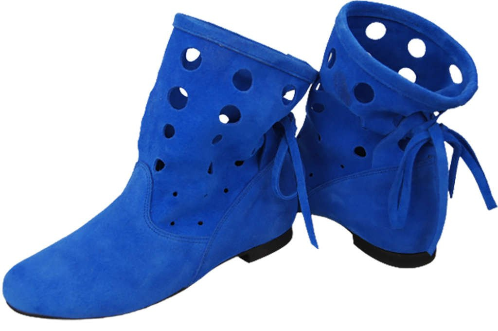 Obuwie Botki Damskie skóra naturalna welurowa Niebieskie 160 ElitaBut
