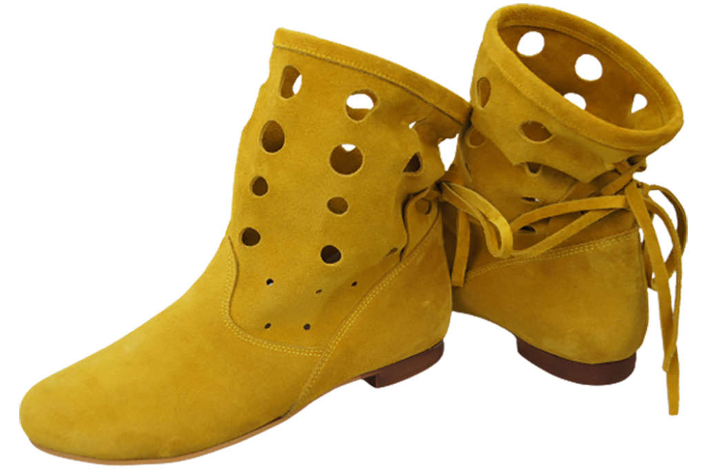 Obuwie Botki Damskie skóra naturalna welurowa Cytrynowe 160 ElitaBut