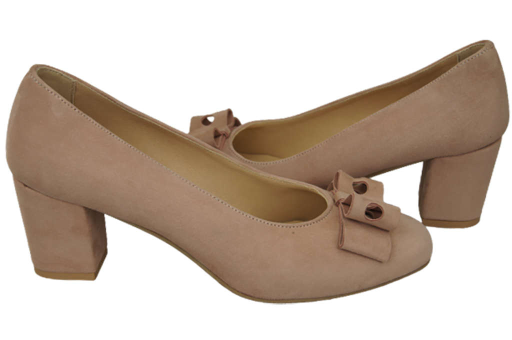 Obuwie Damskie Czółenka Róż Pudrowy Skóra naturalna zamszowa 163 ElitaBut