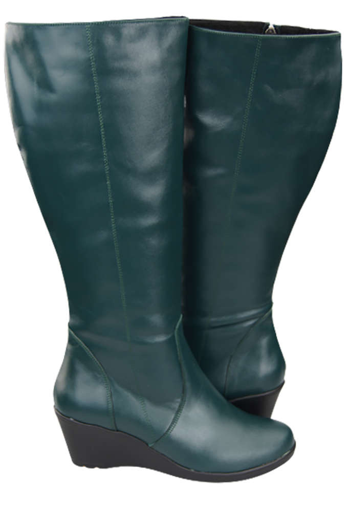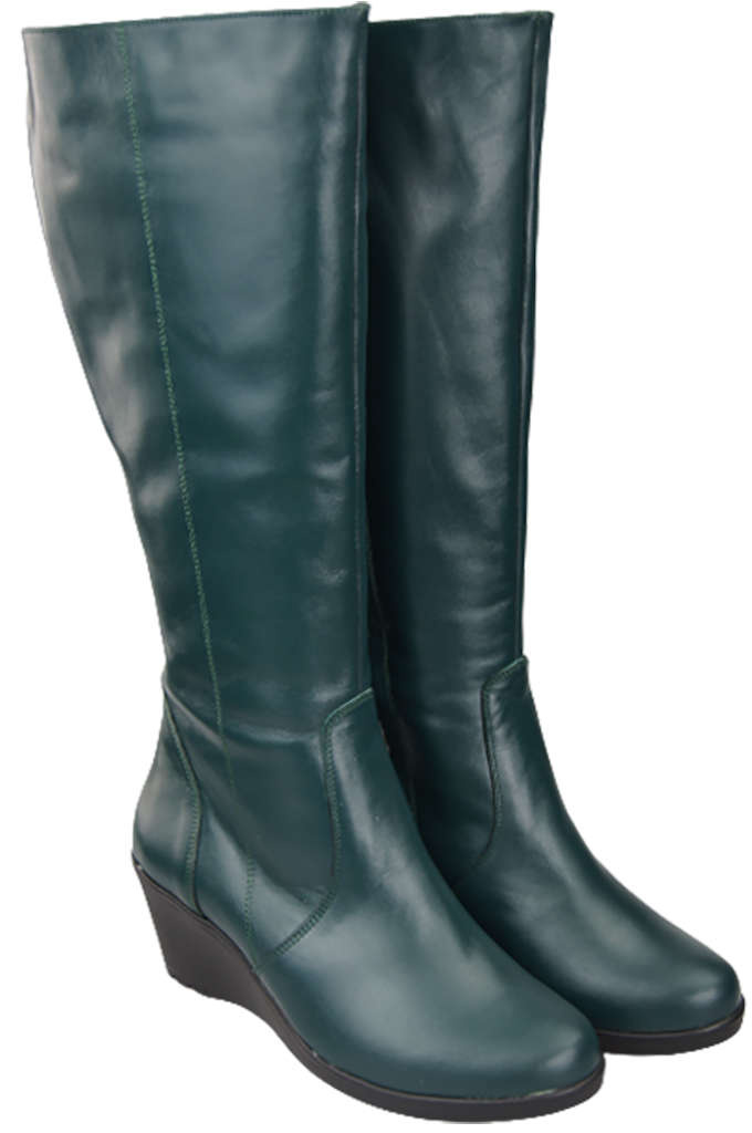 Obuwie Kozaki Damskie Koturna skóra naturalna Malachitowe 177 ElitaBut