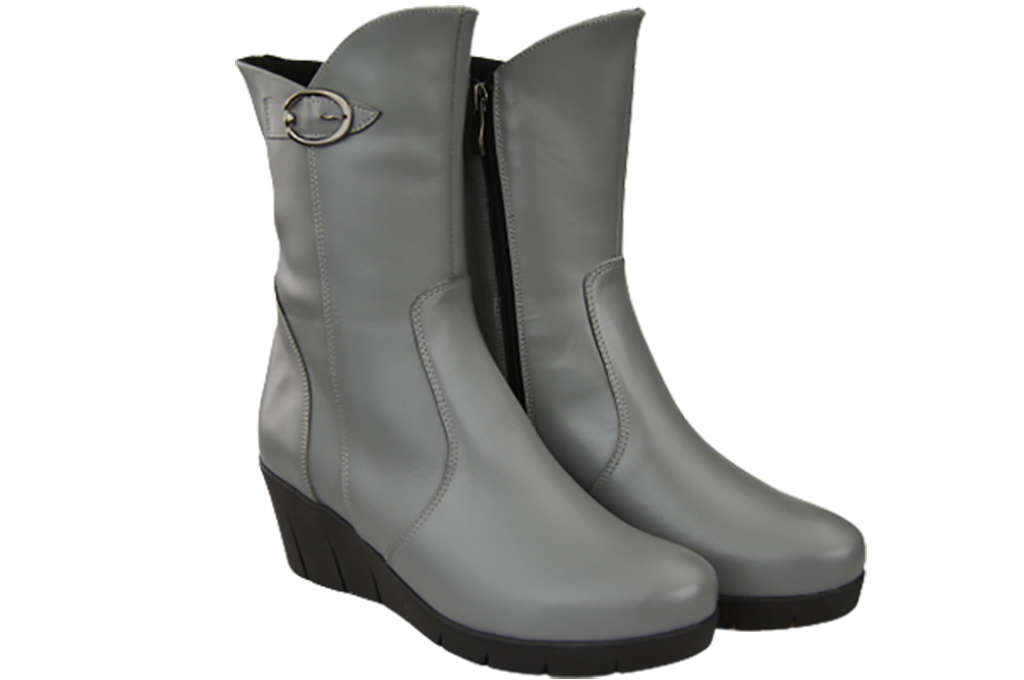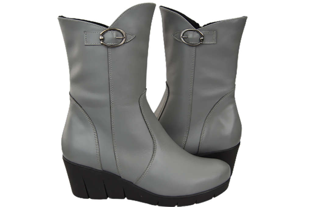 Obuwie Botki Damskie Na Koturnie  skóra naturalna Popielate 178 ElitaBut