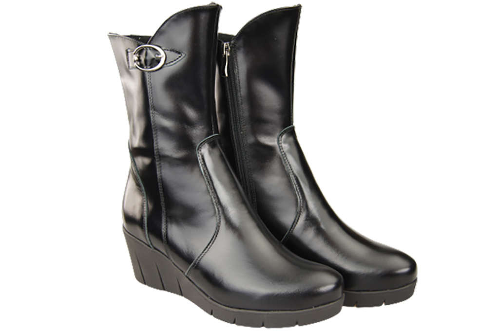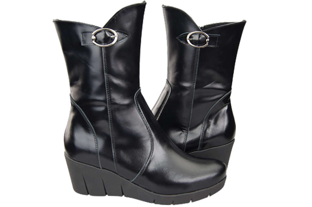Obuwie Botki Damskie Czarne Błyszczące Na Koturnie skóra naturalna 178 ElitaBut