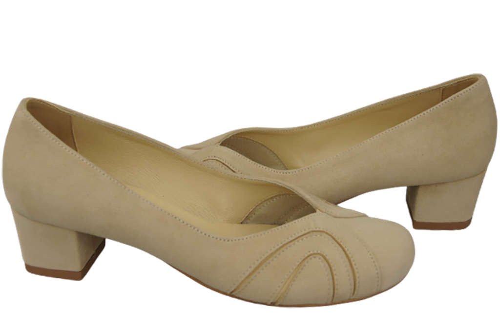 Obuwie Damskie Czółenka skóra naturalna zamszowa Beżowe 786 Z ElitaBut