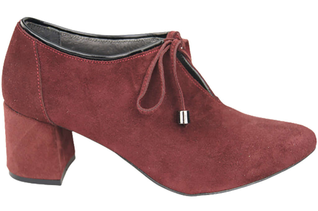 Obuwie Damskie Półbuty Bordowe Skóra naturalna welurowa 183 ElitaBut