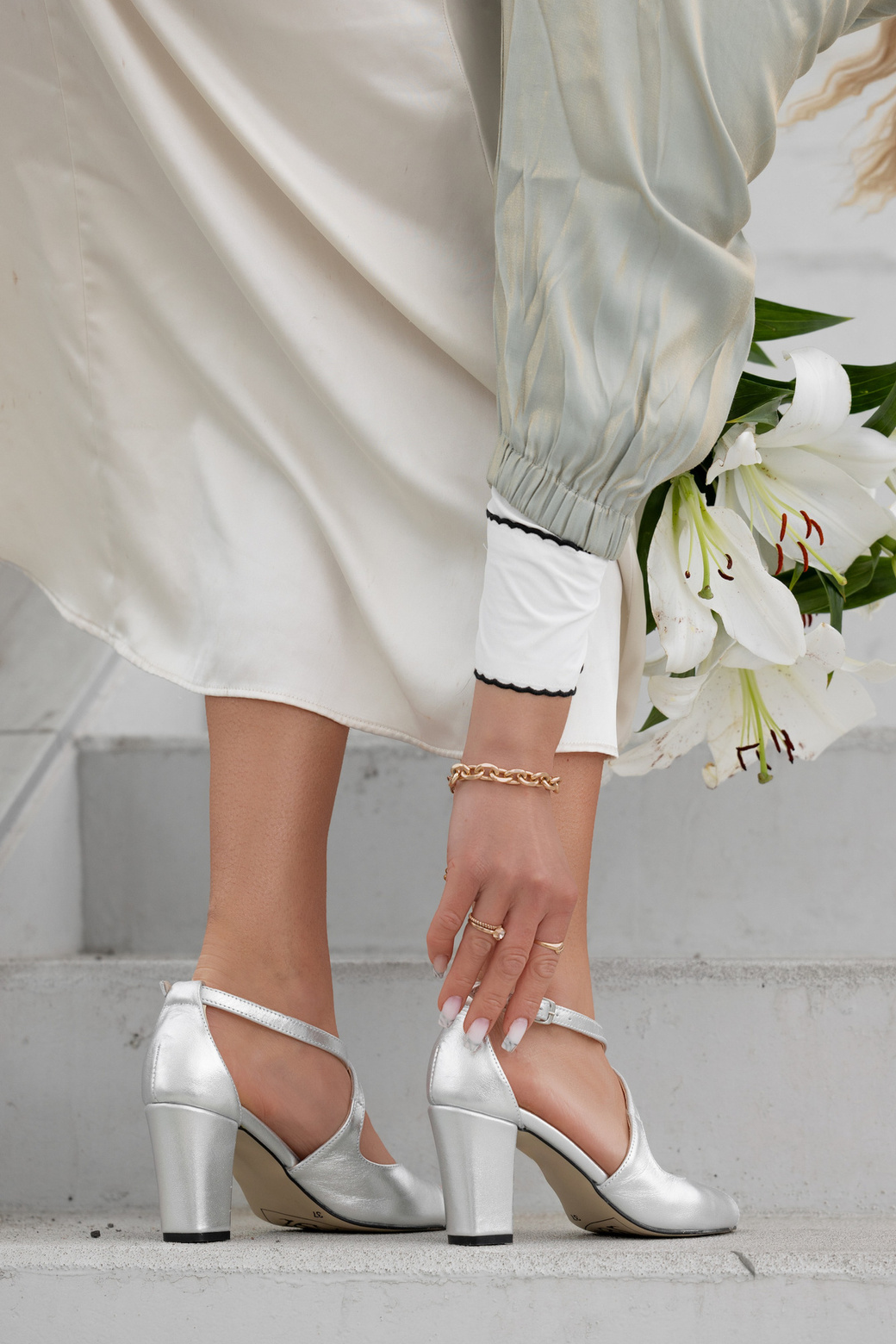 - Idealnie wyprofilowany kwadratowy obcas powleczony skórą zapewnia stabilizację i wygodę z każdym krokiem.