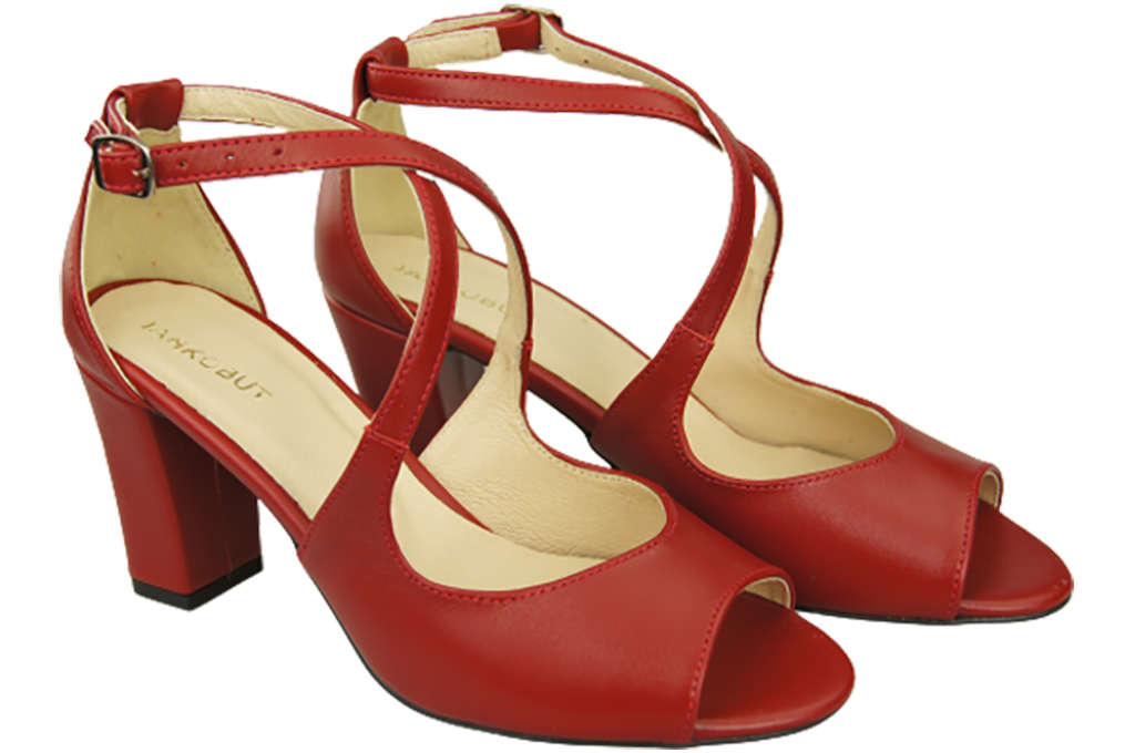 Obuwie Damskie Sandały Czerwone Skóra Naturalna 186 ElitaBut