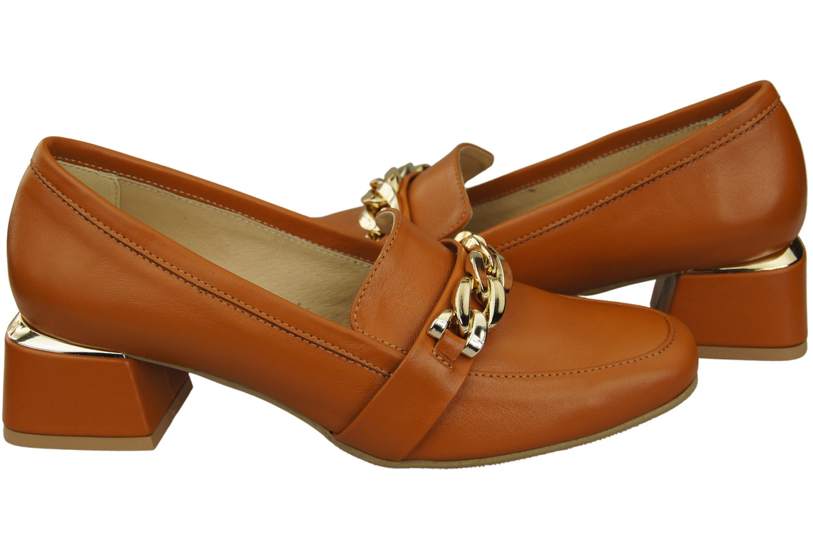 Obuwie Damskie Rude z Ozdobnym Łańcuchem Czółenka Mokasyny Skóra naturalna 193 ElitaBut