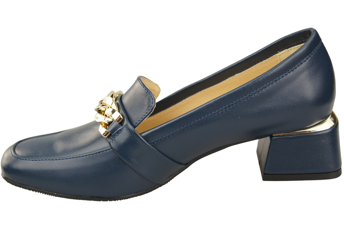 Obuwie Damskie Granatowe z Ozdobnym Łańcuchem Czółenka Mokasyny Skóra naturalna 193 ElitaBut