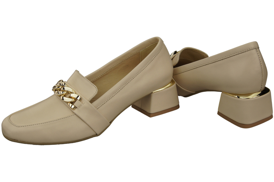 Obuwie Damskie Beżowe z Ozdobnym Łańcuchem Czółenka Mokasyny Skóra naturalna 193 ElitaBut