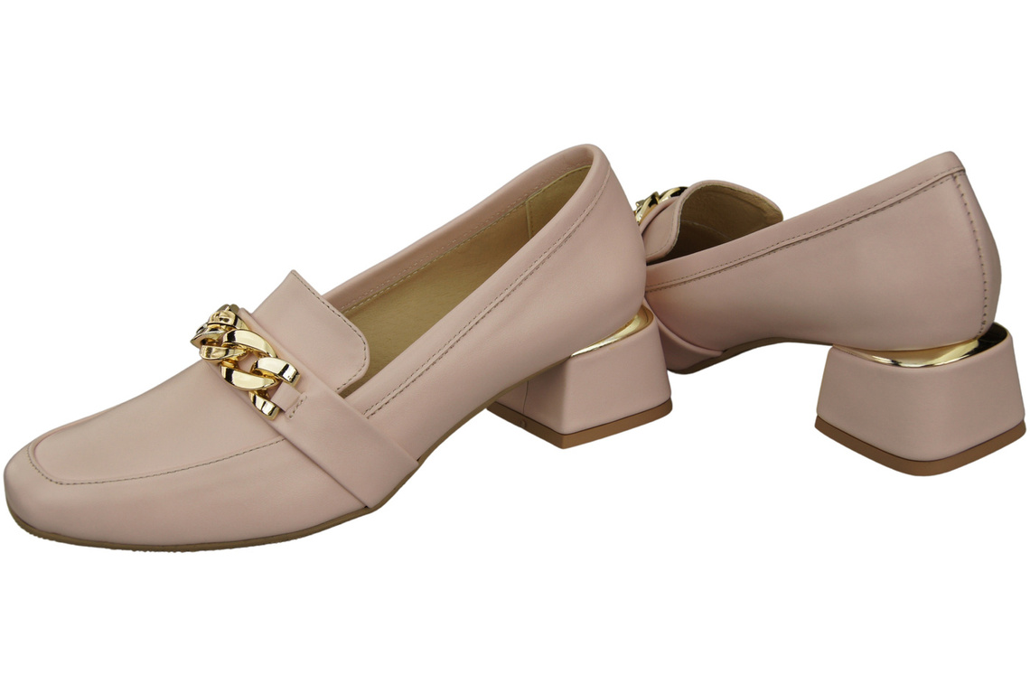 Obuwie Damskie Róż Pudrowy z Ozdobnym Łańcuchem Czółenka Mokasyny Skóra naturalna 193 ElitaBut