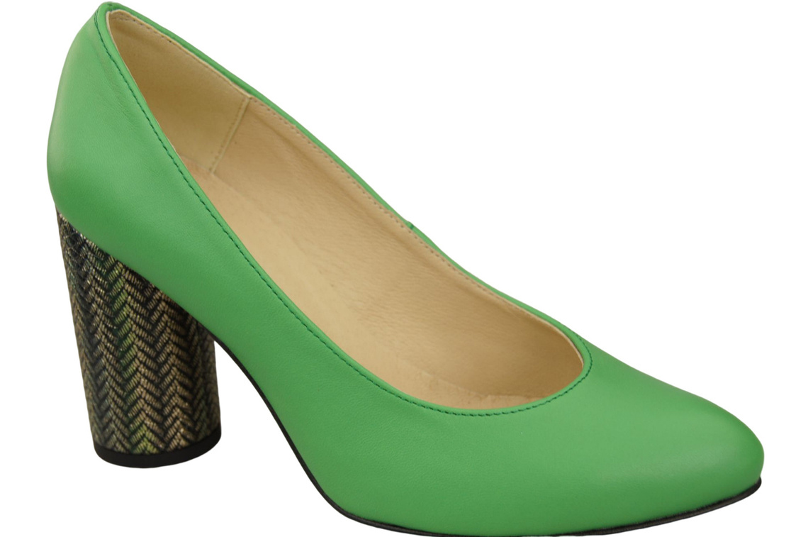 Obuwie Damskie Czółenka Limonkowe Skóra naturalna Kolorowy Ozdobny Obcas 194 ElitaBut