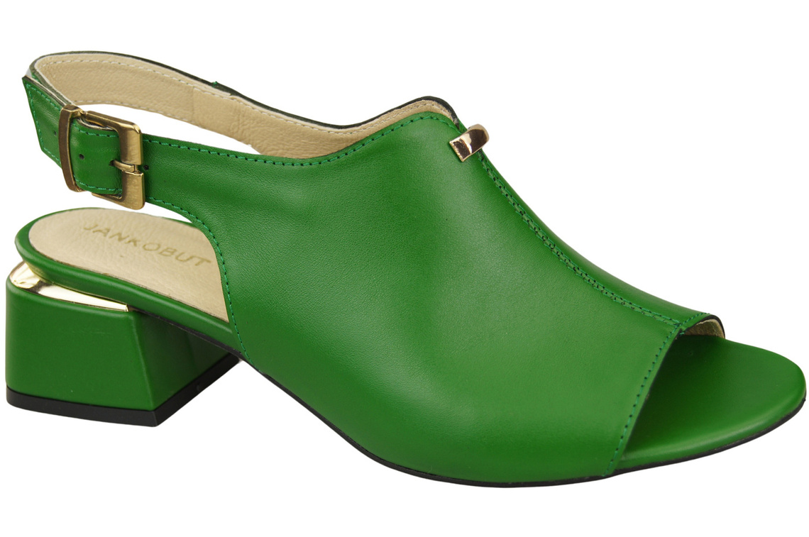 Obuwie Damskie Sandały Zielone złota klamra Skóra Naturalna 198 ElitaBut