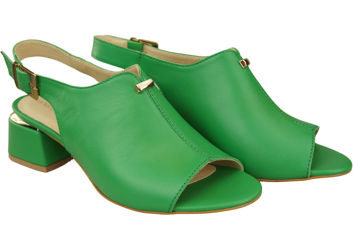 Obuwie Damskie Sandały Limonkowe złota klamra Skóra Naturalna 198 ElitaBut