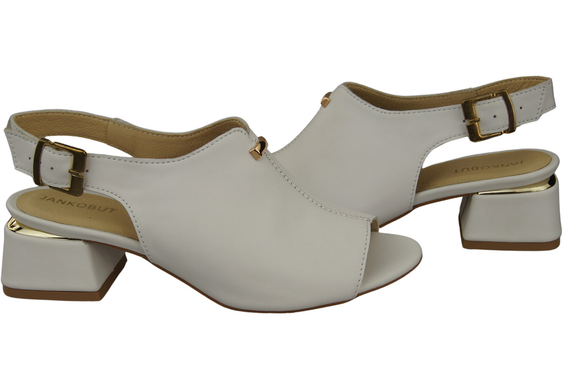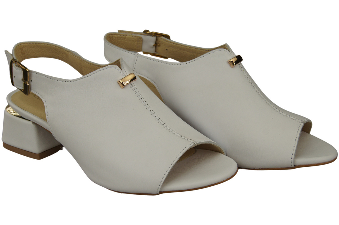 Obuwie Damskie Sandały Białe złota klamra Skóra Naturalna 198 ElitaBut