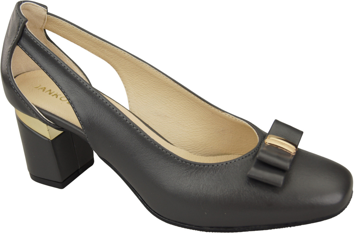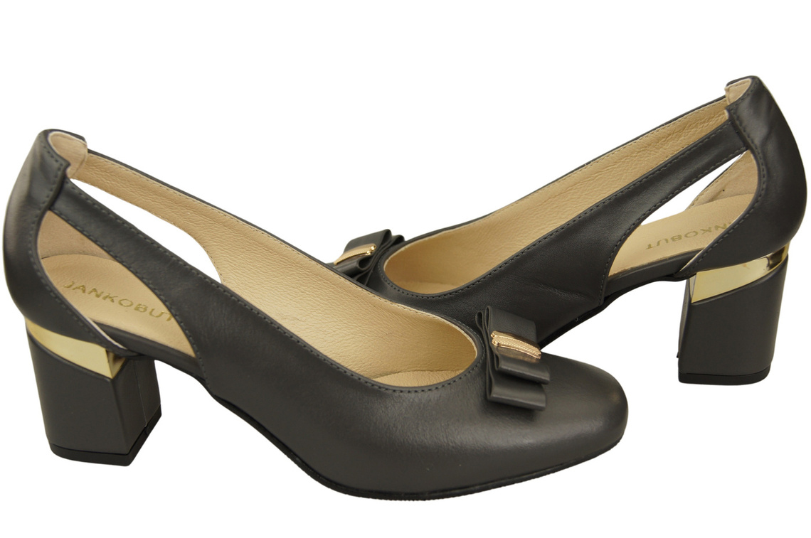Opinie o Buty Czółenka Damskie Grafitowe z Naturalnej Skóry z Ozdobnym Obcasem 199 ElitaBut