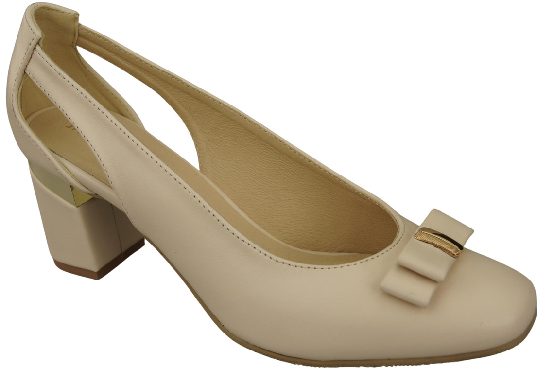 Buty Czółenka Damskie Beżowe z Naturalnej Skóry z Ozdobnym Obcasem 199 ElitaBut