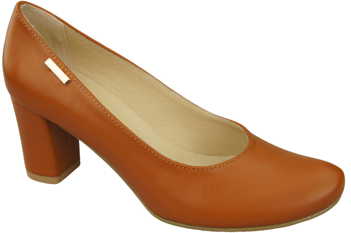 Obuwie Klasyczne Czółenka Damskie Rude z Naturalnej Skóry Migdałowy Nosek 201 ElitaBut