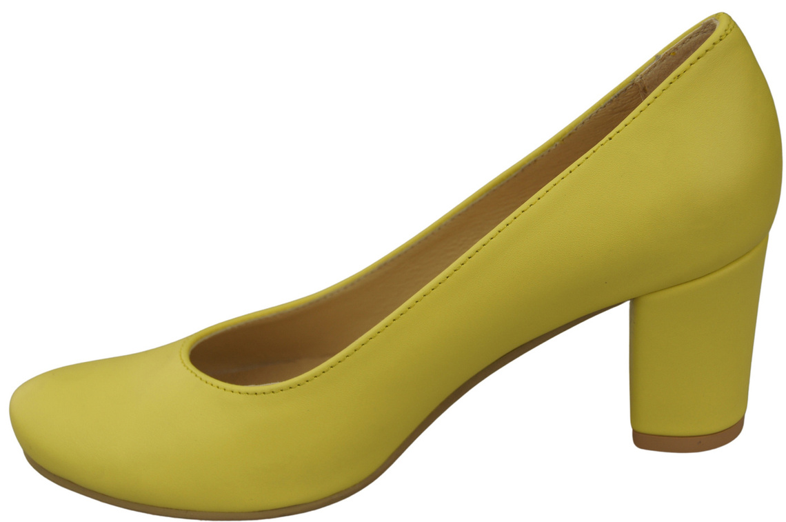 Obuwie Klasyczne Czółenka Damskie Cytrynowe z Naturalnej Skóry Migdałowy Nosek 201 ElitaBut