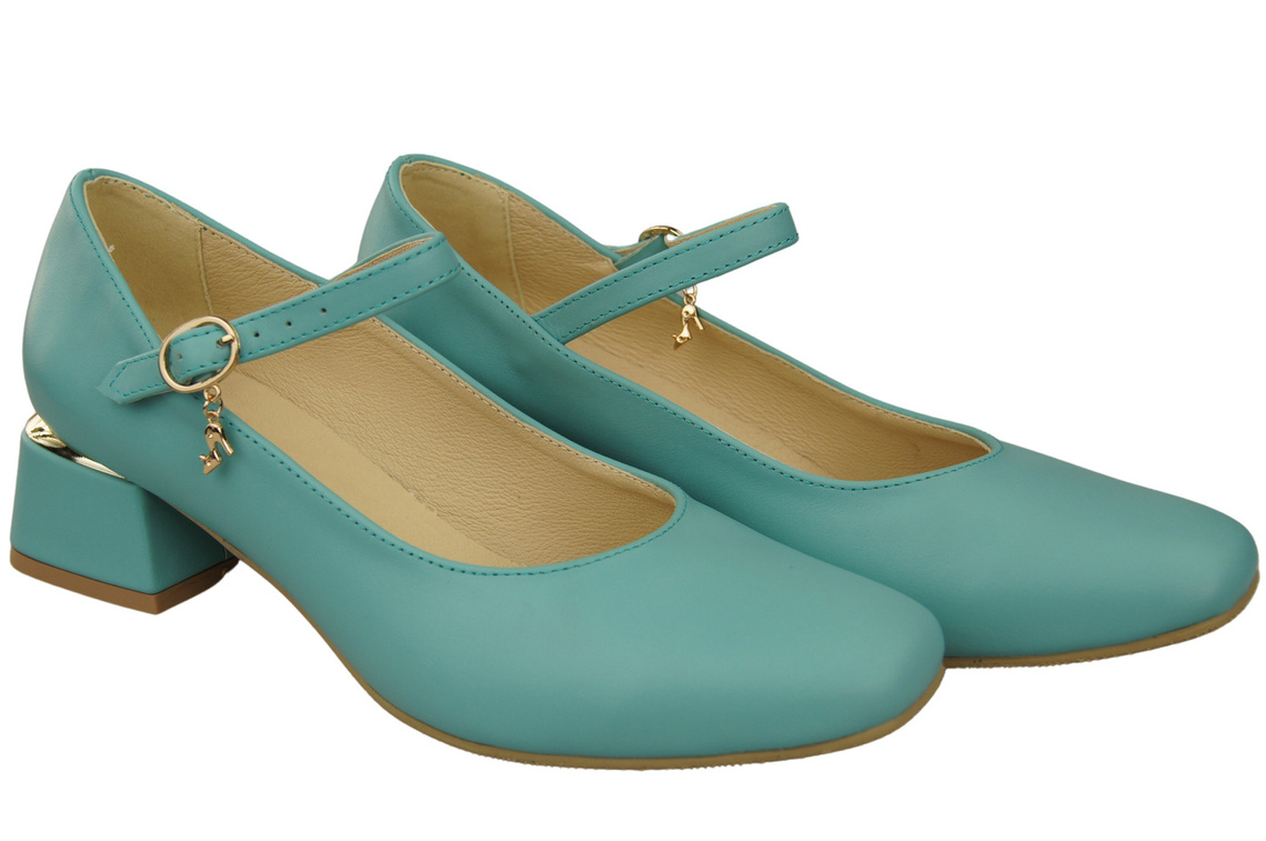 Obuwie Damskie Czółenka z Paskiem Turkusowe Skóra naturalna 202 ElitaBut