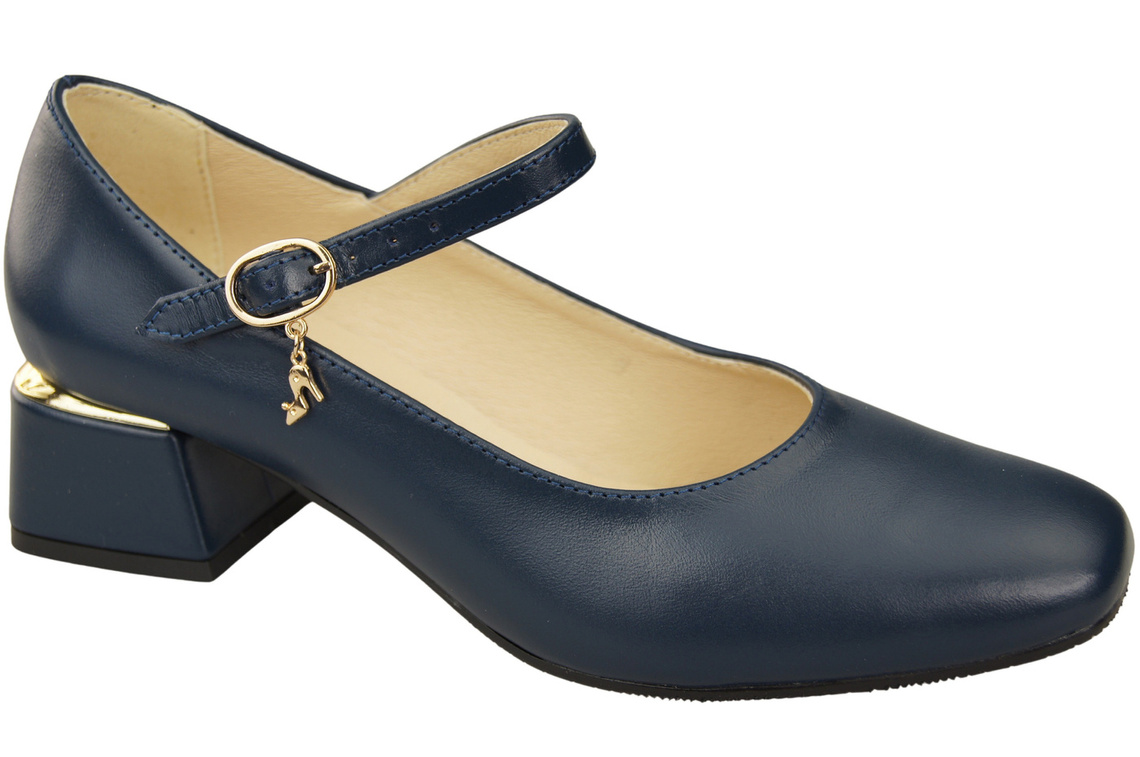 Obuwie Damskie Czółenka z Paskiem Granatowe Skóra naturalna 202 ElitaBut