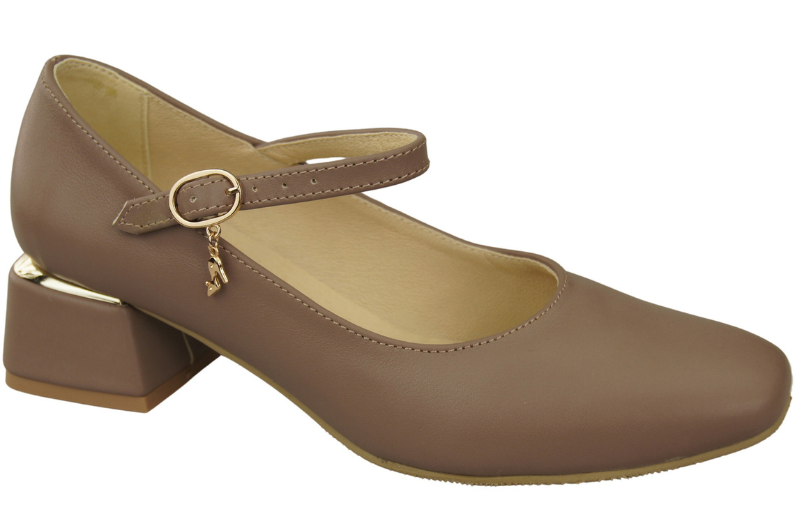 Obuwie Damskie Czółenka z Paskiem Cappuccino Ciemne Skóra naturalna 202 ElitaBut