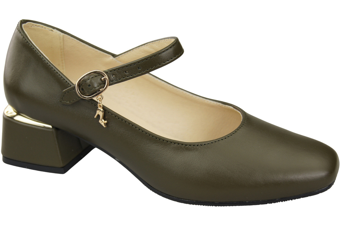 Obuwie Damskie Czółenka z Paskiem Oliwkowe Skóra naturalna 202 ElitaBut