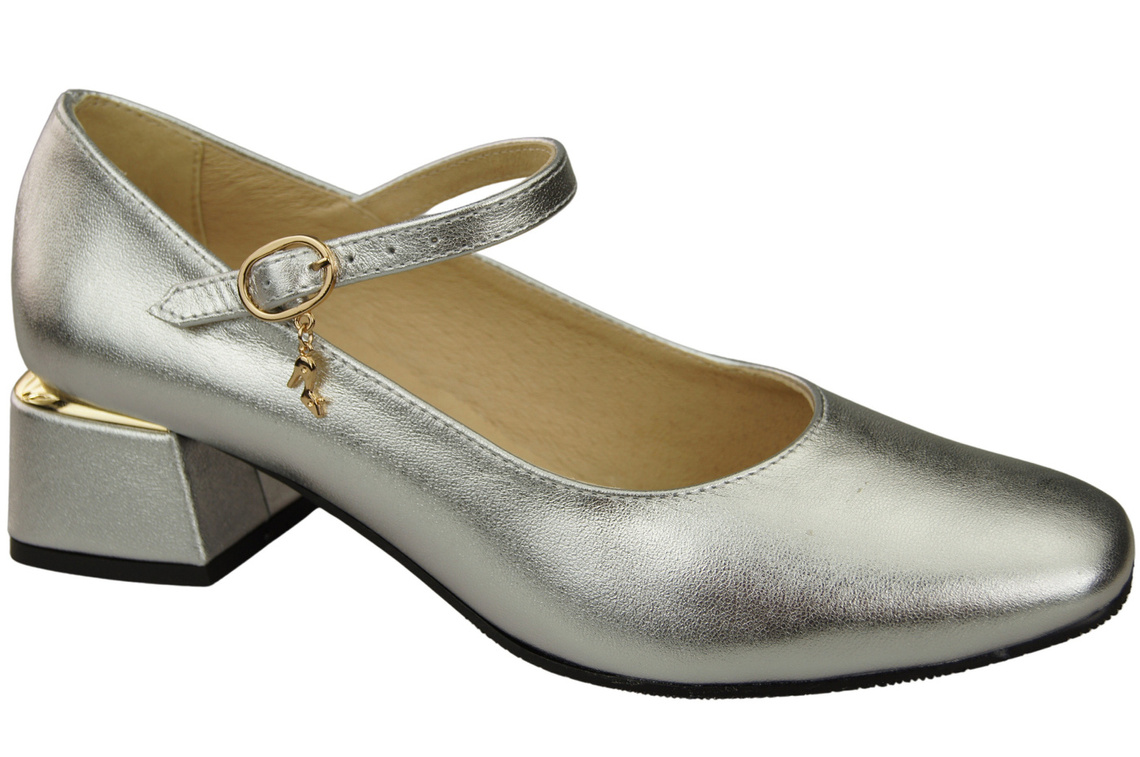 Obuwie Damskie Czółenka z Paskiem Srebrne Skóra naturalna 202 ElitaBut
