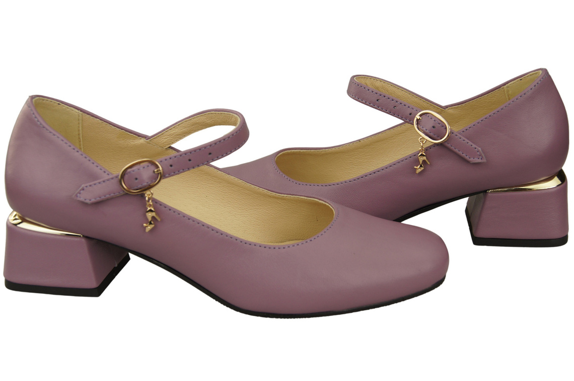 Obuwie Damskie Czółenka z Paskiem Lila Skóra naturalna 202 ElitaBut