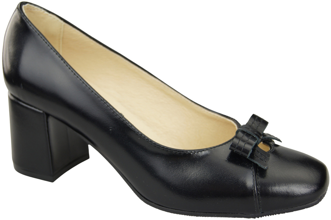 Opinie o Czółenka Damskie z Kokardką Czarne Błyszczące Skóra Naturalna i Niski Obcas 203 ElitaBut