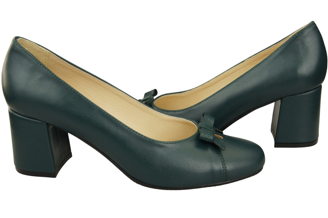 Opinie o Czółenka Damskie z Kokardką Malachitowe Skóra Naturalna i Niski Obcas 203 ElitaBut