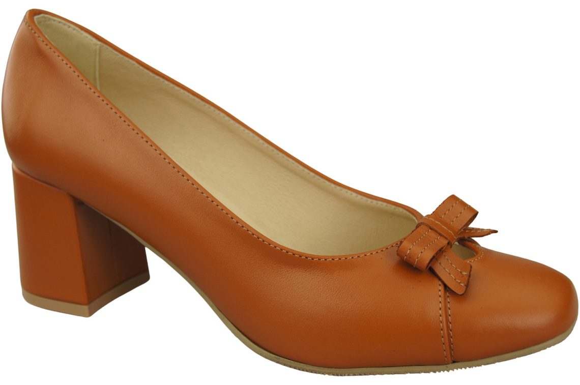 Czółenka Damskie z Kokardką Rude Skóra Naturalna i Niski Obcas 203 ElitaBut